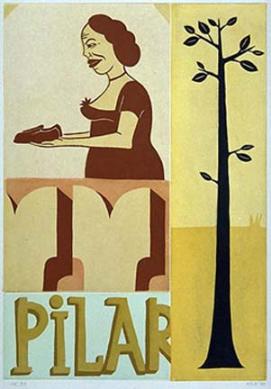 "Pilar," Margaret Kilgallen, 1999.When I got the email about Margaret, at first I thought it was a nasty joke. It was forwarded anonymously from the General Collections department at San Francisco Public Library; "Margaret Kilgallen of Preservation passed away early this morning, of complications from breast cancer, in the arms of her husband Barry and their newly born daughter, Asha." I was in France at the time, jet-lagged and checking my email on a very rickety computer; I managed to write another friend of Margaret's before the computer crashed, and I dissolved into hysterical sobs. "Did you send me this? I am in shock."